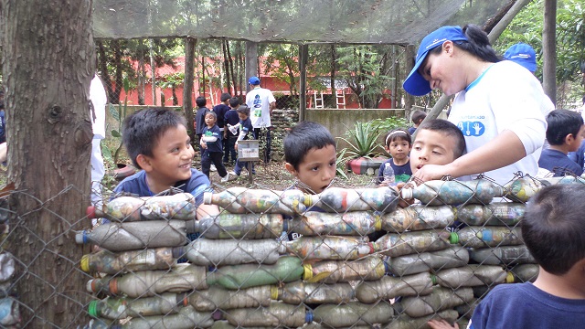 “Pero la responsabilidad ambiental de Walmart de México y Centroamérica no es únicamente cuidar del parque y reforestar, hay diferentes actividades de concientización, es por eso que construyen un muro con envases plásticos de botellas de agua, rellenos de empaques de golosinas, de esa manera no se tira esto a la basura, el proyecto se denomina eco-ladrillo y es un muro que rodea un vivero”, según Silvia Roy, Directora del Parque Naciones Unidas.