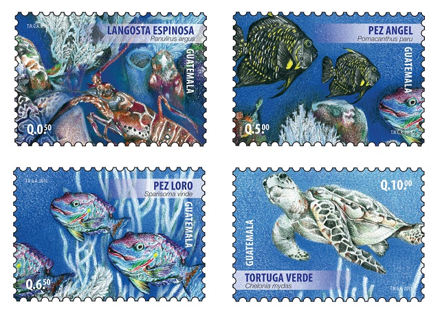 La Dirección General de Correos y Telégrafos emite sellos postales de la langosta espinosa, el pez ángel, el pez loro y la tortuga marina.