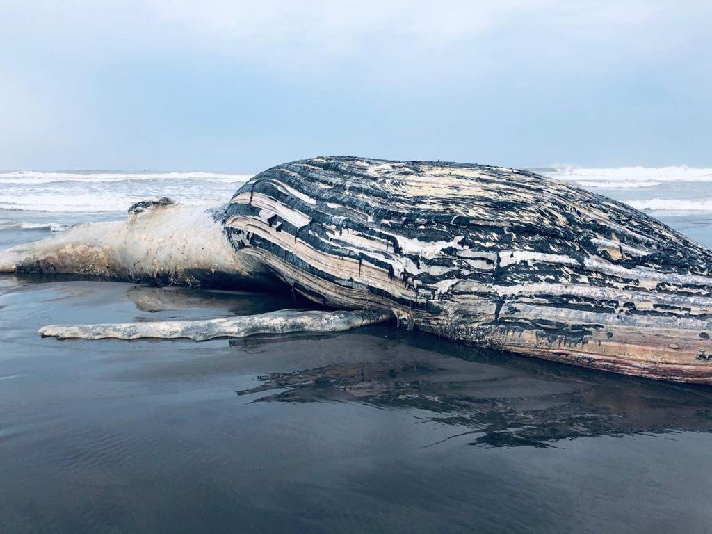 Es un espécimen adulto, y mide aproximadamente 13 metros de longitud. En el área no es común ver ese tipo de especies de gran tamaño. Hasta el momento se desconocen las causas de la muerte de dicha ballena, dado que murió mar adentro, en su aspecto físico se nota el grado de descomposición, y ya tiene devorada una aleta, por lo que se calcula que lleva así por lo menos una semana.
