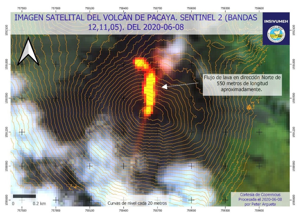 Se observa un flujo de lava en el volcán Pacaya, en dirección norte de 550 metros de longitud aproximadamente.