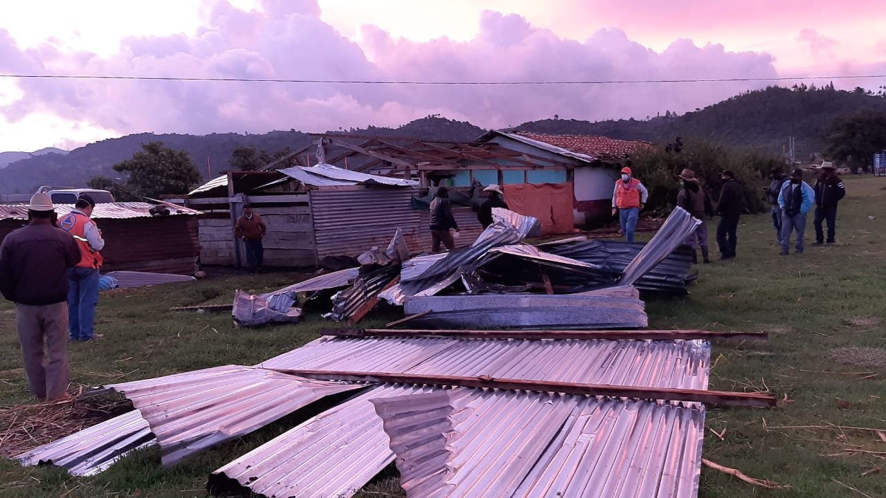 Coordinadora Nacional para la Reducción de Desastres (CONRED) informa que ayer al final de la tarde ocurrió un embudo de aire frío que afectó a 49 personas en los cantones El Calvario y Siete Pinos en Chiantla, Huehuetenango. Según las evaluaciones de daños y análisis de necesidades son 7 viviendas identificadas con daños moderados. Las autoridades municipales han brindado el apoyo a las familias afectadas.