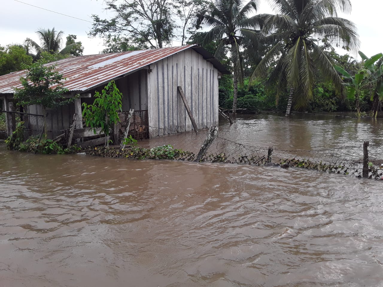 Aldea El Naranjo, Flores, Petén. Desbordamiento de arroyo causa inundación en viviendas.
