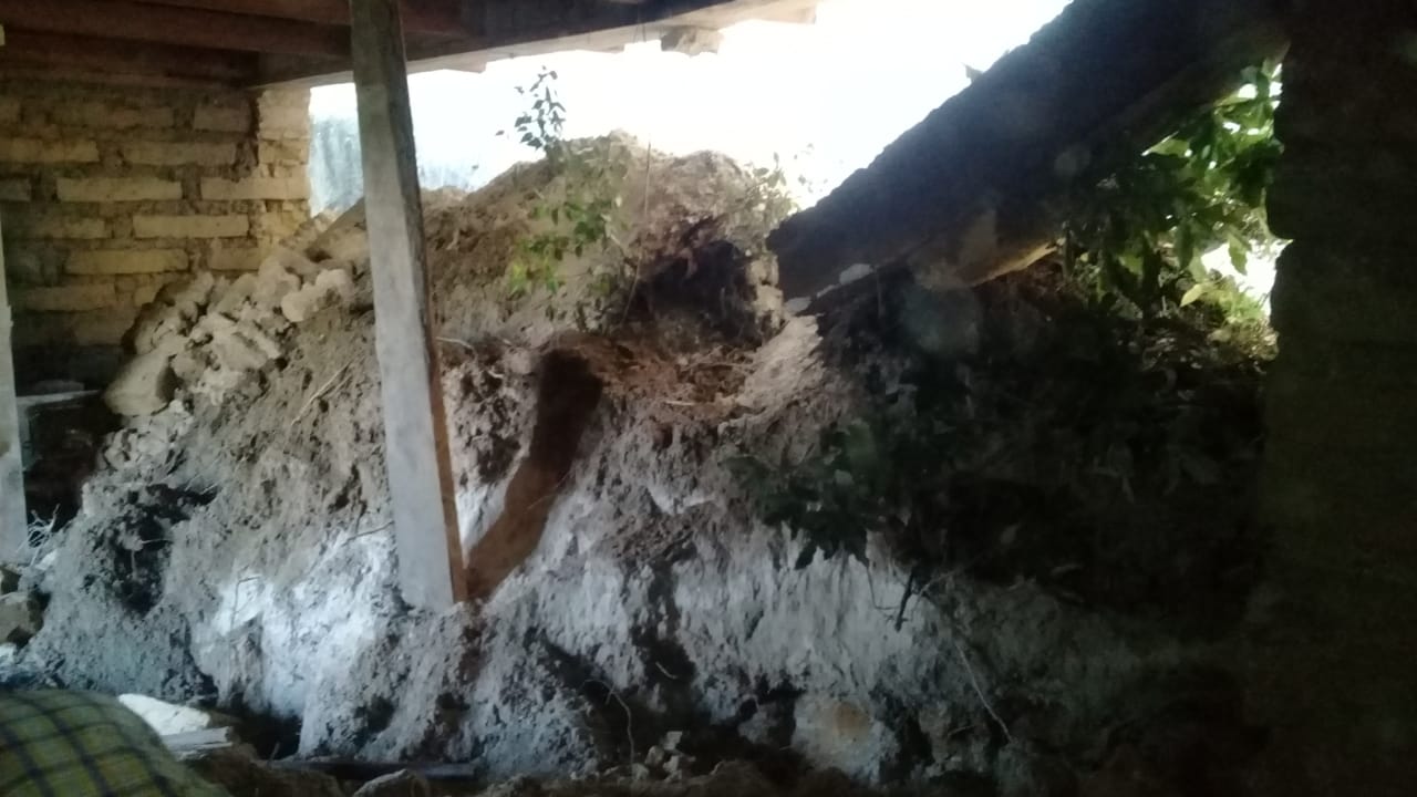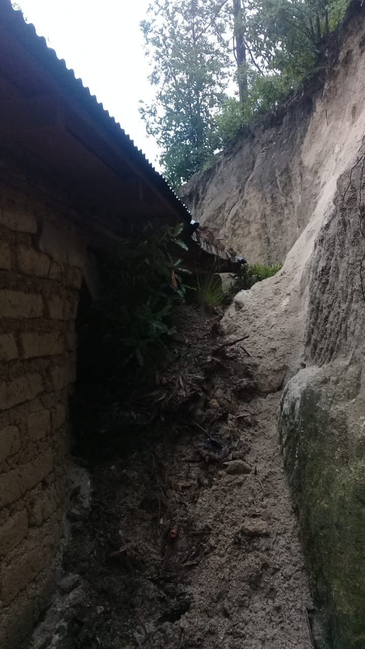 Caserío Uyumán, San Miguel Ixtahuacán, San Marcos. La lluvia provocó la saturación del suelo, generando un deslizamiento que afecta una vivienda.