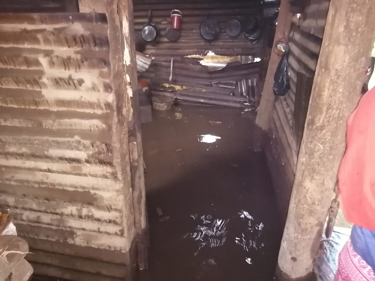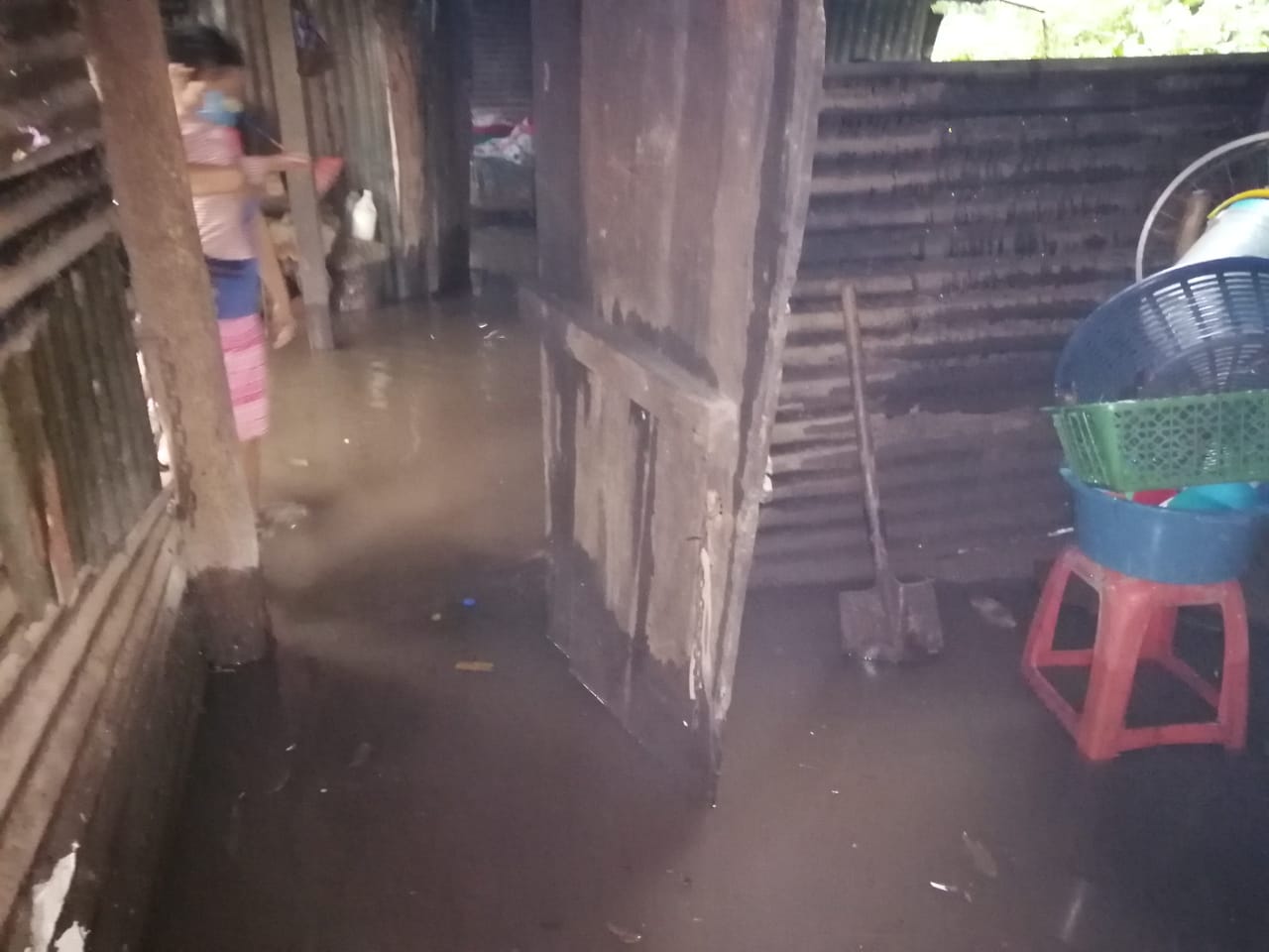 Aldea Nahualate, Chicacao, Suchitepéquez, la lluvia provocó una inundación pluvial, causando daños a vivienda.