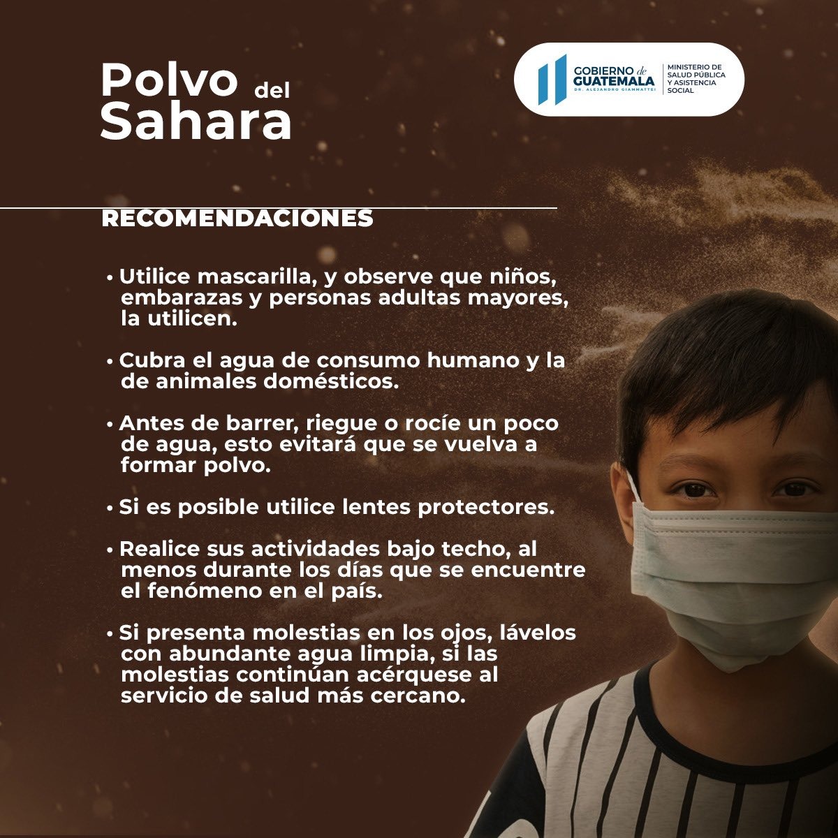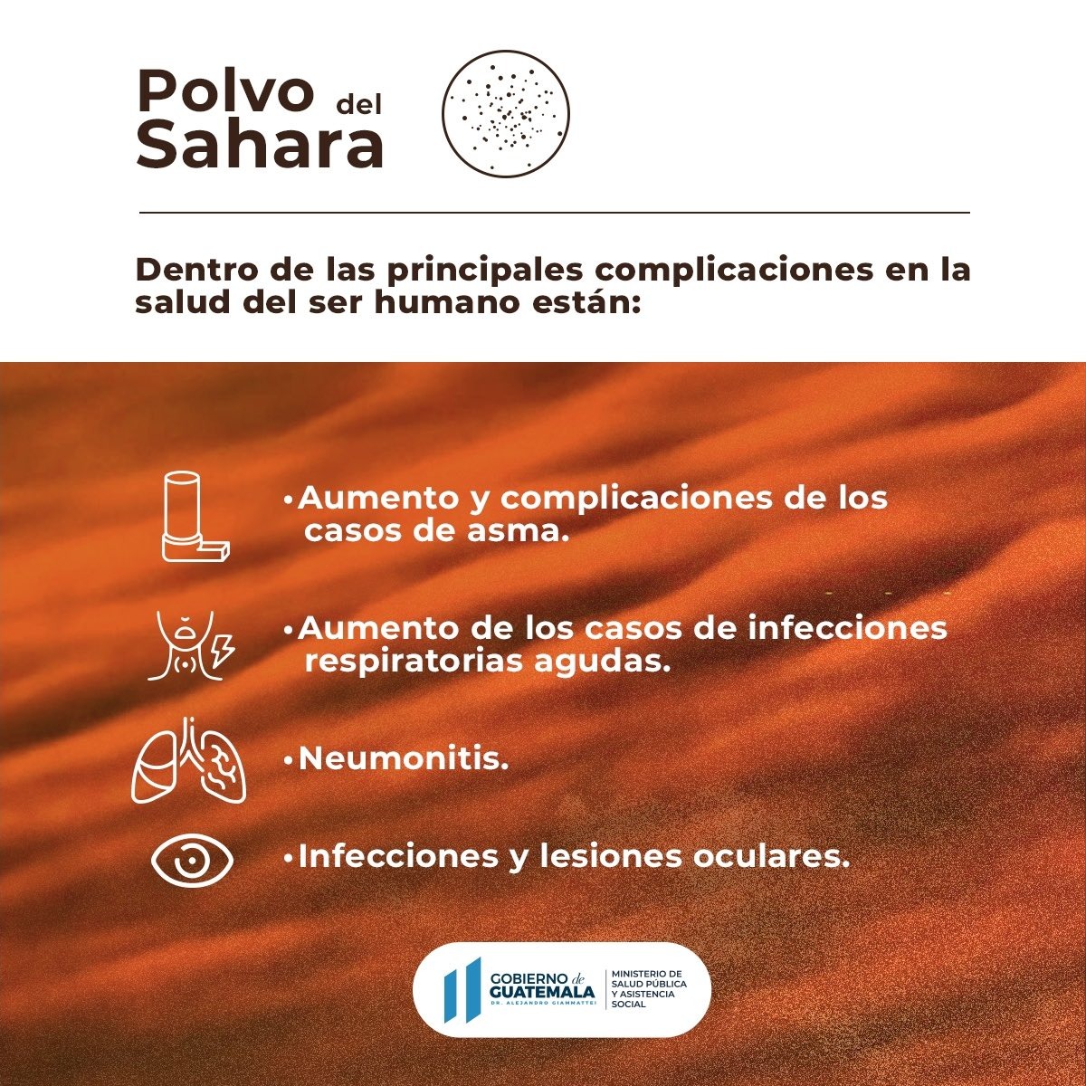 De acuerdo con un boletín de calidad de aire del Instituto de Sismología, Vulcanología, Meteorología e Hidrología (INSIVUMEH), nuevamente ingresa al territorio nacional, una nube de polvo del Desierto del Sáhara.