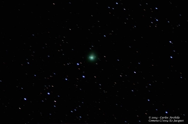 Muchos cometas se ven verdes. Algunos completamente verdes desde la cabeza hasta la cola. Como diría Miguel Angel Asturias, verdes, verdes, verdes. Hay otros con la cabeza verde y otros con la cabeza blanca y la cola verde. Pero el verde está frecuentemente en los cometas.