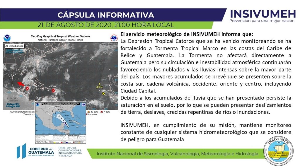 De acuerdo con el informe del Instituto de Sismología, Vulcanología, Meteorología e Hidrología (INSIVUMEH) no afectará directamente a Guatemala, pero favorecerá para el incremento de lluvias en todo el país.