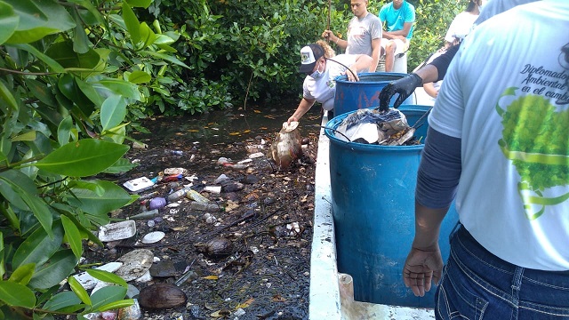 Como parte del Diplomado en Educación Ambiental con Énfasis en Cambio Climático que imparte el Ministerio de Ambiente y Recursos Naturales (MARN), y el apoyo de la organización Vive Verde, realizan actividad para la limpieza del Canal de Chiquimulilla en la Laguna Quita Sombrero, en el municipio de San José, Escuintla, donde retiran 1.5 toneladas de desechos sólidos.