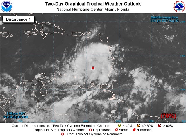 Un sistema de baja presión se desplaza sobre el Océano Atlántico en el mar Caribe con un 70 por ciento de probabilidad de fortalecerse a una Depresión Tropical, según el pronóstico del Centro Nacional de Huracanes de Estados Unidos, así lo informó la Coordinadora Nacional para la Reducción de Desastres (CONRED).