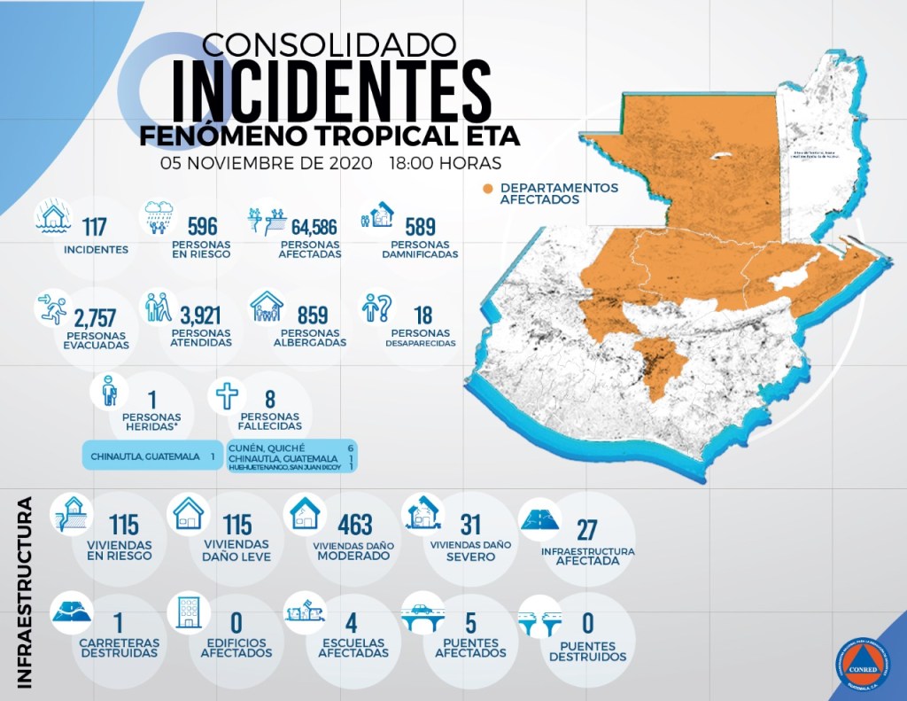 Este día el Presidente de la República De Alejandro Giammattei, junto con su gabinete, declaró el estado calamidad, de esa manera podrán dar ayuda inmediata a esos miles de personas que se han quedado sin casa.
