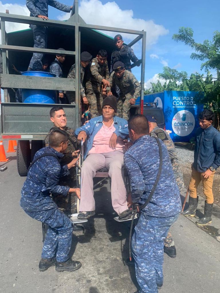 La brigada de infantería Marina, realiza operaciones de asistencia humanitaria, vía acuática y terrestre hace la evacuación de unas 200 personas en la Aldea Quineles, Quetzalito y Las Vengas en Izabal.