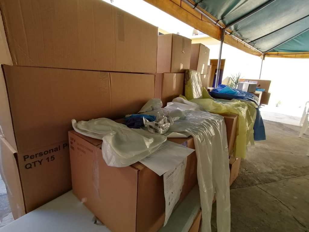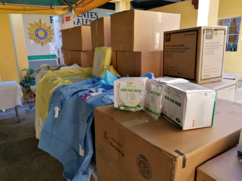 El material donado incluye batas de protección, mascarillas, guantes y gorros quirúrgicos, entre otros artículos médicos con el fin de contribuir a los esfuerzos de las autoridades locales para contrarrestar la pandemia.