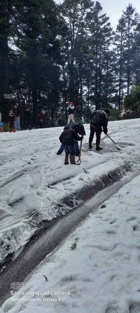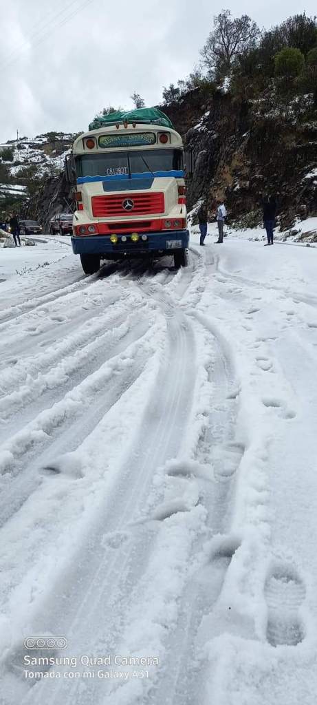 Las bajas temperaturas provocaron caída de granizo en San Marcos, cubriendo, sembrados y la cinta asfáltica. Informó la Coordinadora Nacional para la Reducción de Desastres (CONRED).