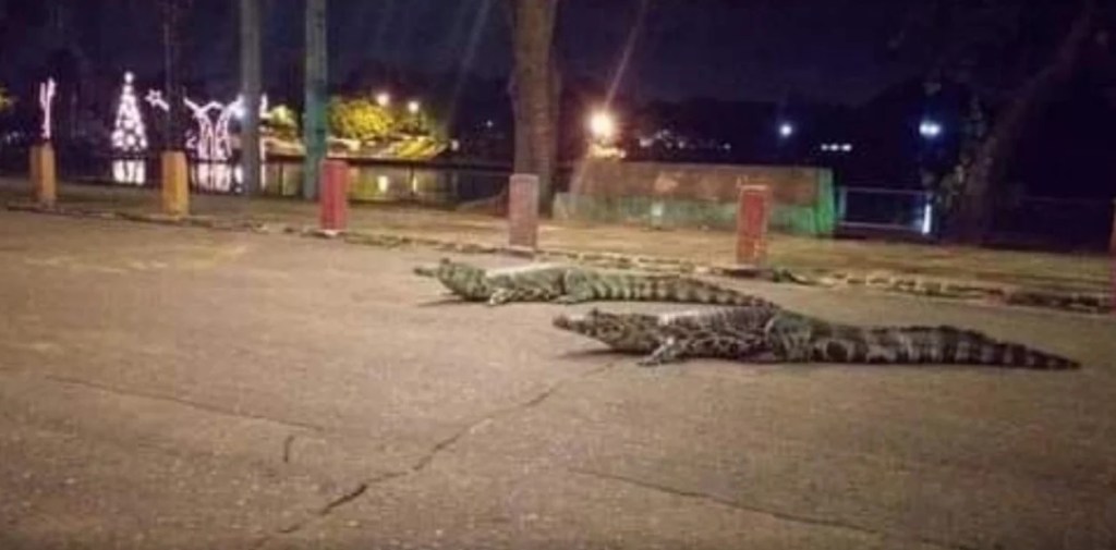 Tras una tormenta que desbordó la laguna Itá, a 30 kilómetros de la capital de Asunción. Debido a las intensas precipitaciones, estas provocaron el hundimiento de un muro de contención, a raíz de estos unos siete caimanes de entre uno y medio y dos metros escaparon y llegaron a las calles de un centro comercial. Los vecinos aterrados por la presencia de los reptiles llamaron de inmediato a los rescatistas, que después de varias horas consiguieron atraparlos, informó Francisco Platón, portavoz del Cuerpo de Bomberos de Itá.