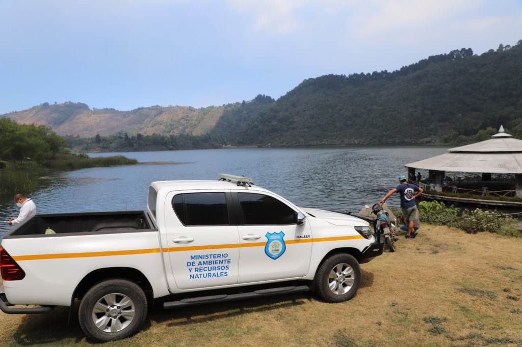 El Ministerio de Ambiente y Recursos Naturales (MARN), por medio del viceministro de Recursos Naturales y Cambio Climático, Fredy Chiroy, visitó hoy la Laguna Calderas en seguimiento a la mesa técnica para proteger este recurso ubicado en la aldea San José Calderas, entre Amatitlán y Escuintla.