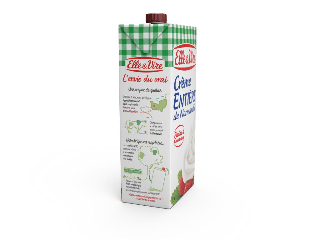Elle & Vire seleccionó la tapa HeliCap 23 para sus productos de crema, que se distribuyen en envases de cartón Tetra Brik Aseptic Slim 1 litro. Esta tapa rosca y resellable de un solo paso se fabrica en la planta de Châteaubriant de Tetra Pak en Loire-Atlantique (Francia), sitio que ha recibido la certificación por parte de la Mesa Redonda de Productos Avanzados de Biomateriales Sostenibles (RSB) y ha recibido una inversión de 100 millones de euros para acelerar la transición a la producción de tapas sostenibles. La tapa HeliCap 23 ofrece a los consumidores facilidad de apertura y cuenta con un anillo de prueba de inviolabilidad visible, lo que brinda la seguridad de que el producto no se ha abierto antes.